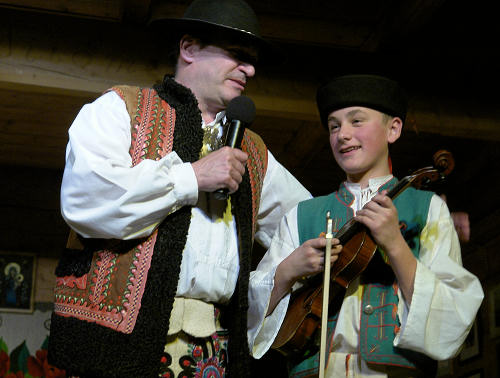 | Po całym tym obszarze Karpat, po jego kulturze i muzyce, przewodnikiem dla zebranych na widowni był prowadzący koncert Jan Karpiel-Bułecka. | ||
