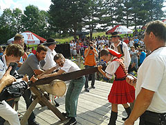 Następnie w rywalizacji sportowej mogły się zmierzyć pary mieszane, które miały za zadanie w jak najszybszym czasie przeciąć kłodę drzewa. Najszybsi okazali się: Maria i Stanisław Staszel z Cichego z czasem 28,84 sekund. Na drugim miejscu uplasowali się: Katarzyna Zielińska i Roman Para z Kościeliska (czas 33,19 sekund), a na trzecim: Renata i Krzysztof Staszel z Cichego (czas 33,56 sekund). Po zmaganiach sportowych zespół „Drevar” z miejscowości Krásno nad Kusycou ze Słowacji pokazał wschodniosłowacki taniec karička - żwawy taniec dziewczęcy, któremu towarzyszy śpiew dziewcząt, tańce z regionu Szarisza oraz niespodziankę - tańce romskie. Wystąpiła również amatorska grupa teatralna działająca przy Związku Podhalan Oddział Witów, przedstawili oni scenkę rodzajową jak to małżonkowie i nie tylko, spotkali się w sądzie, na szczęście wszystko dobrze się skończyło.